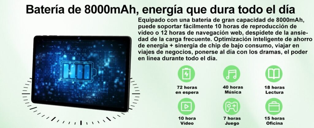 Bater¨ªa de 9000mAh dura todo el d¨ªa sin necesidad de recargar.